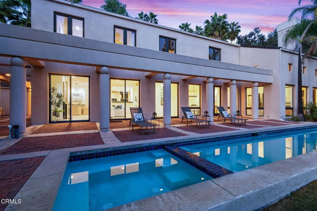 Elegant 6 bedroom, 7 bathroom French Neoclassical villa located on a quiet street above the prestigious Annandale Golf Club in Pasadena. Set behind a gated motor court, this stunning estate designed by architect Michael C. F. Chan blends classic architecture with contemporary finishes.The home features a seamless floor plan with beautiful formal entertaining rooms, a spacious family room, and a brand new gourmet kitchen, all overlooking the reflecting/lap pool, fountains, patios, and lush garden setting.The kitchen is equipped with top-of-the-line appliances, including two Miele dishwashers, 2.5 Wolf range ovens, and Sub-Zero refrigerator and freezer. 3-car garage, guest suite above the garage, and elegant indoor-outdoor living ideal for both entertaining and everyday comfort.