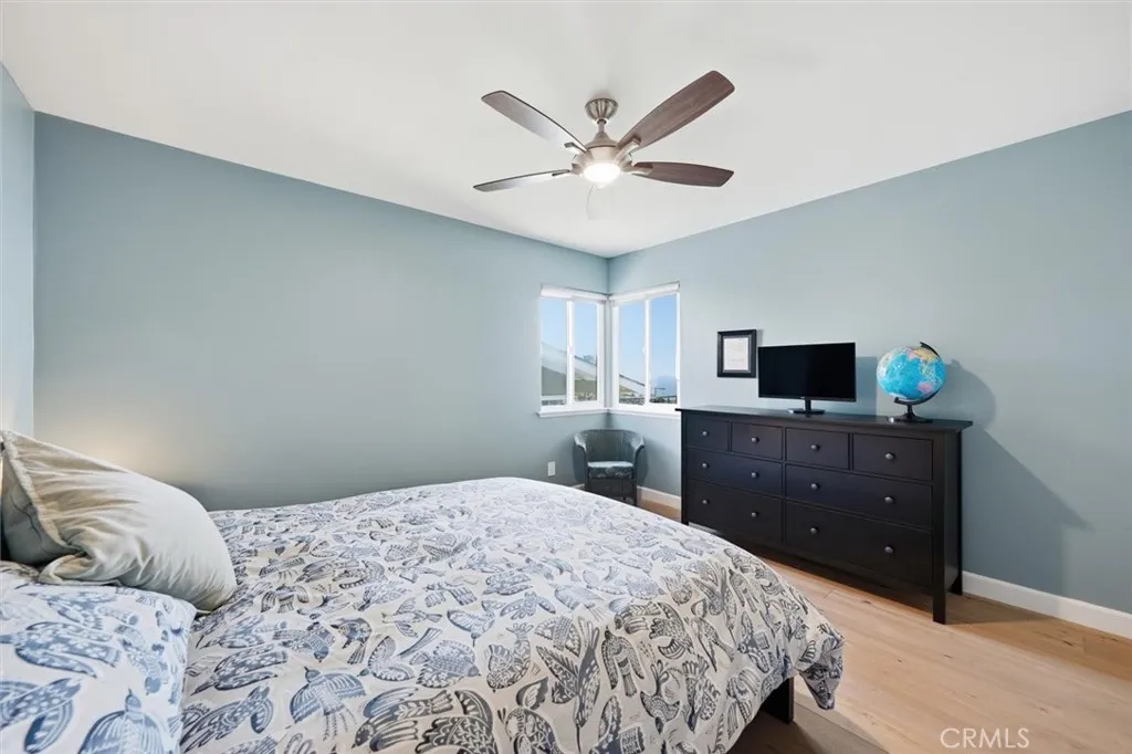 Imagine starting your day with the sunrise toward Dana Point and ending with the golden sun melting into the Pacific behind Santa Barbara Island, with Catalina Island perfectly centered on the horizon. That is the everyday backdrop at this South Shores home, where breathtaking ocean views unfold from nearly every room and from the front-row pool overlooking the coastline. From morning coffee overlooking the water to watching the clouds transform the sky throughout the day, no two days are ever the same offering the kind of scenery most people only experience on vacation. This home was designed to embrace natures incredible vistas, beginning with the entry level that welcomes you with a versatile dining area or den complete with a wet bar and direct access to the garage. Downstairs, the living room opens toward the view, centered around a fireplace with sliding glass doors that lead directly to the backyard and pool. The living room flows into a sitting room facing the ocean and a kitchen featuring granite countertops, natural-tone cabinetry, and a breakfast nook with a second set of sliding doors to the yard. There is one bedroom on this level, currently used as an office, with glass French doors that enjoy the views, along with a nearby three-quarter bathroom and storage room. The thoughtful tri-level layout continues upstairs, where the remaining three bedrooms capture elevated views. The primary suite serves as a peaceful retreat, highlighted by a large picture window framing the coastline and a remodeled ensuite bathroom with a spacious walk-in shower showcasing a cust