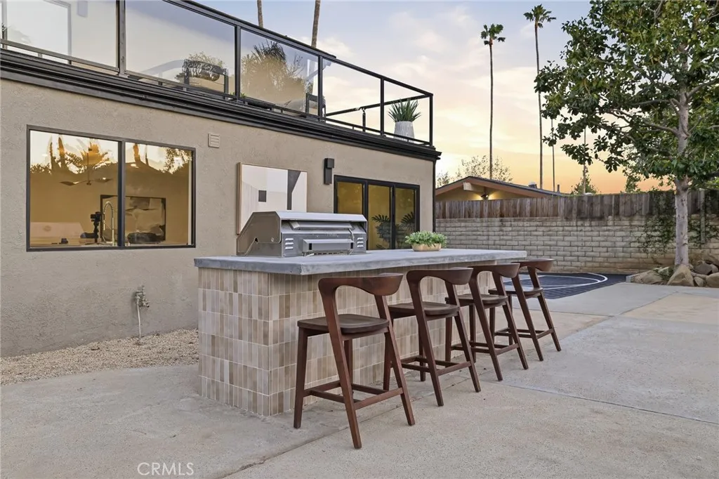 Welcome to Casa Oso Niwa. Completely remodeled inside and out, this impressive 5-bedroom, 3.5-bathroom residence offers approximately 2,912 square feet of beautifully updated living space designed for comfort, tranquility and entertainment. The free flowing interior features a spacious main floor layout with bright living areas featuring two bi-folding doors inviting an indoor-outdoor lifestyle. The chef's kitchen is perfect for entertaining, featuring custom cabinets, hide-away appliances, a 48" 8 burner gas range, waterfall quartz counters and beverage fridge along with modern brass finishes. 100 square foot laundry and pantry room added for out of sight storage and easy access. Also located on the main floor is a bedroom with ensuite bathroom perfect for guests or multi-generational living. Venture upstairs to a primary suite that features vaulted ceilings and walk-in closet along with a resort style ensuite bathroom that features a double vanity and double walk-in shower. The generously sized bedrooms provide flexibility for family, guests, or a home office, while the updated guest bathroom adds a touch of contemporary elegance. The second-floor also features access to a 325 square foot balcony Step outside to a private boutique style retreat designed with a calming Japandi aesthetic highlighted by a sparkling pool and multiple spaces creating the perfect setting for recreation, gatherings, and relaxing weekends at home. This property delivers a move-in-ready opportunity with plenty of space to live, play, and entertain.