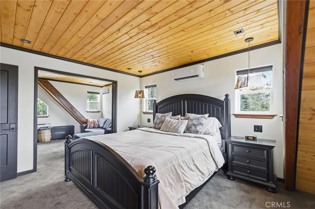 The Ultimate Modern-Rustic Retreat in Cedar Glen!! Experience the perfect harmony of vintage mountain charm and 21st-century luxury in this meticulously restored masterpiece. Originally erected in 1938, this home has undergone a massive, complete transformation that leaves no stone unturned. Situated on a premier corner lot bathed in natural light, the property features a rare mountain luxury: abundant street-level parking and a brand-new oversized carport. Step inside to a seamless interior featuring upgraded luxury vinyl flooring, stunning pine board ceilings, and synergistic wainscoting. The chefs kitchen is a true showstopper, boasting custom cabinetry, sleek quartz countertops, a farmhouse copper sink, and a beautiful kitchen island. The main level flows into a spa-like bathroom complete with a two-person steam shower and electric heated floors, while the upstairs primary suite offers a new cedar walk-in closet and an oversized Juliet balcony with scenic views of Lake Arrowhead. Unique to this property is the intentional "Guest Stateroom" buildout, featuring a private half-bath with a barn door and a new kitchenettethe ideal setup for a private guest escape or high-end rental. Peace of mind comes standard with "over-built" infrastructure rarely found in the San Bernardino mountains. This retreat is prepared for every season with fireproof Rockwool insulation, shear walls, a radiant barrier foil, and a new 200 Amp service panel equipped with a Kohler generator and automatic transfer switch. High-capacity climate control is provided by a 36k multi-zone heat pump and a ta