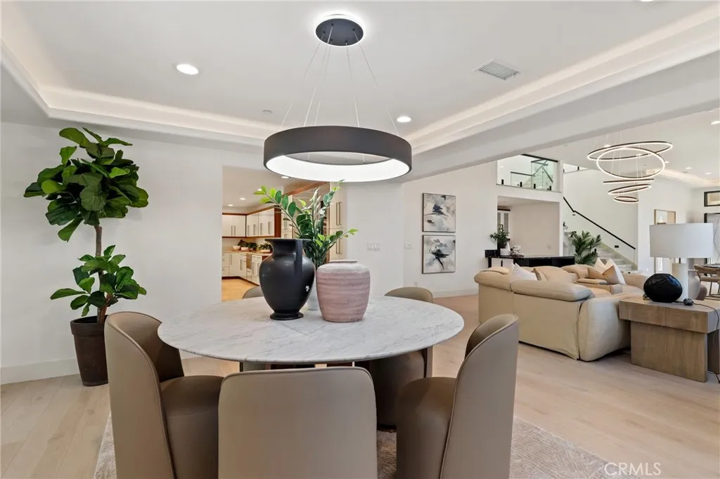 Experience Contemporary Coastal Luxury at its finest at 35242 Vista De Todo, an extraordinary modern estate masterfully rebuilt with uncompromising attention to detail and craftsmanship. Tucked at the end of a quiet cul-de-sac in Capistrano Beach, this residence commands exceptional curb appeal, sweeping ocean vistas, and vibrant sunset skies that frame the home in year-round beauty. A striking 5 x 8 metal pivot door sets the tone as you step into a dramatic living area with soaring 12 ceilings, designer lighting, and an architectural glass staircase with sleek black steel handrail. The open-concept great room is anchored by an artistic modern fireplace and a stunning marble wet bar with glass front cabinetry and a built-in wine refrigeratoran entertainers dream. With 6 expansive ensuite bedrooms, each offering walk-in closets, plus two additional half baths, this 6,409 sq ft estate blends sophistication with effortless comfort. The main level includes two luxurious bedroom suites, while the upper level showcases a spectacular primary retreat with a private ocean-view terrace. Multiple balconies throughout the home capture panoramic coastal views and unforgettable sunsets. The gourmet kitchen features stone countertops, Thermador stainless appliances, a full-size wine refrigerator, breakfast bar, and casual dining area. Picture windows and sliding doors gain access and frame the beautifully designed backyard, complete with a putting green, BBQ, Italian pizza oven, outdoor wine cooler, fruit trees, and manicured wraparound grounds. The second floor also offers a private offi