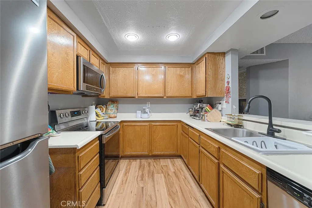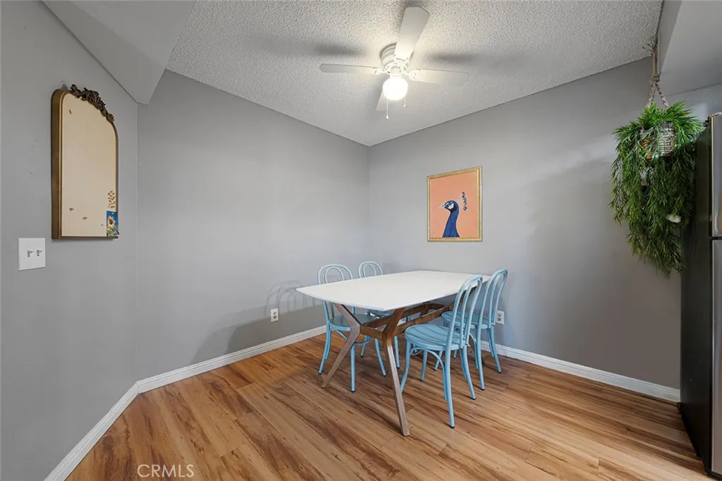 Enjoy one of the LARGEST PATIOS in the community with HOA covering most utilities, a rare value meets effortless living! Beautifully maintained condo located in the desirable Phillips Ranch area of Pomona. This home features one of the largest private patios in the complex, offering EXCEPTIONAL OUTDOOR SPACE for entertaining or relaxing. And a separate gate in the patio for when hosting! Interior includes a light-filled living area with wood-style flooring and direct access to the spacious patio, creating a seamless indoor-outdoor flow. Kitchen offers ample cabinetry and functional layout adjacent to dining area. The primary suite FEATURES a large closet and sliding glass doors that open directly to the patio, perfect for slow mornings or unwinding at the end of the day. An ADDITIONAL bedroom offers great natural light and a comfortable layout near the hallway bathroom. An UNIQUE feature includes a PRIVATE LAUNDRY CLOSERT located on the patio for added convenience. Community amenities include a pool, 3 different spas, picnic area, and doggy waste stations, along with well-maintained grounds. This home INCLUDES one assigned parking space and one assigned garage space. HOA dues include water, trash, and gas (all utilities except electricity), providing added value and convenience. The HOA in this community is responsive and quick to address any incidents. Conveniently LOCATED NEAR the 60, 57, and 71 freeways, with close proximity to shopping, dining, Mt. SAC, and Cal Poly Pomona. Great opportunity for first-time buyers or those seeking low-maintenance living with generous out