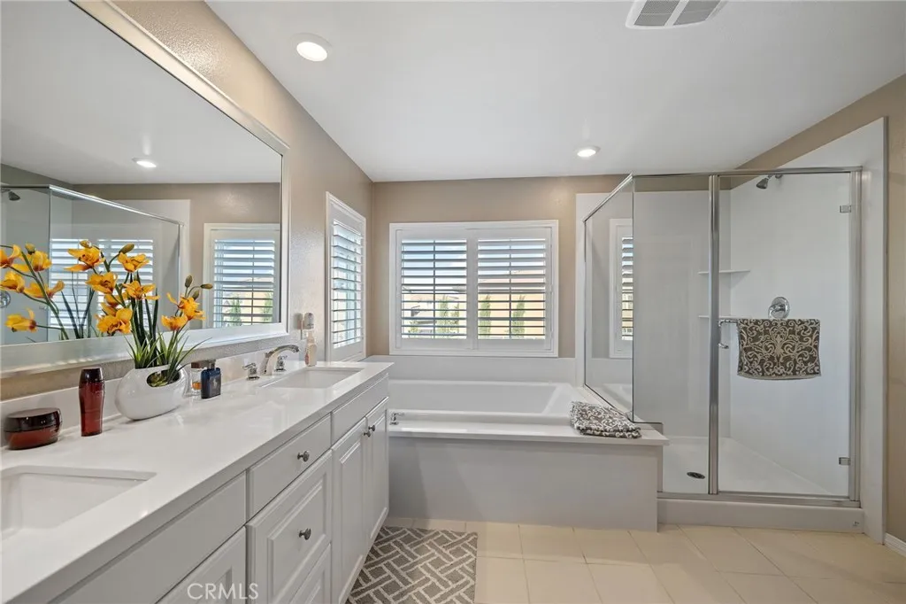 Located in the desirable Riverbend Community of Jurupa Valley, this spacious Lennar-built home was constructed in 2018 and offers 5 bedrooms, 3 bathrooms, and approximately 3,831 sq. ft. of living space on an 11,325 sq. ft. lot. The home features a 3 car attached garage with a tandem space and built-in cabinets for extra storage. The main level includes a formal living room, formal dining room, family room with gas burning fireplace, and a gourmet kitchen with granite countertops, center island with breakfast bar, walk-in pantry, and stainless steel GE appliances including a gas 5 burner cooktop, microwave, double oven, and dishwasher. One bedroom and full bathroom are conveniently located downstairs. Upstairs features a spacious loft, an individual laundry room with sink and built-in cabinets, and a large primary suite with retreat area. The primary bathroom includes dual sinks, vanity area, soaking tub, walk-in shower, private toilet room, and a spacious wrap-around walk-in closet. Interior finishes include porcelain tile flooring in the main living areas and bathrooms, hardwood flooring in all bedrooms, the stairway, loft, and upstairs hallway, and tile flooring in the laundry room and primary bathroom. Additional features include central A/C and heating, dual pane windows, plantation shutters, recessed lighting, reverse osmosis system, and tankless water heater. The backyard is designed for outdoor entertaining and features a California Room with gas fireplace, stainless steel Artisan built-in BBQ, gas fire-pit, automatic sprinkler systems, rain gutters, and gated RV pa