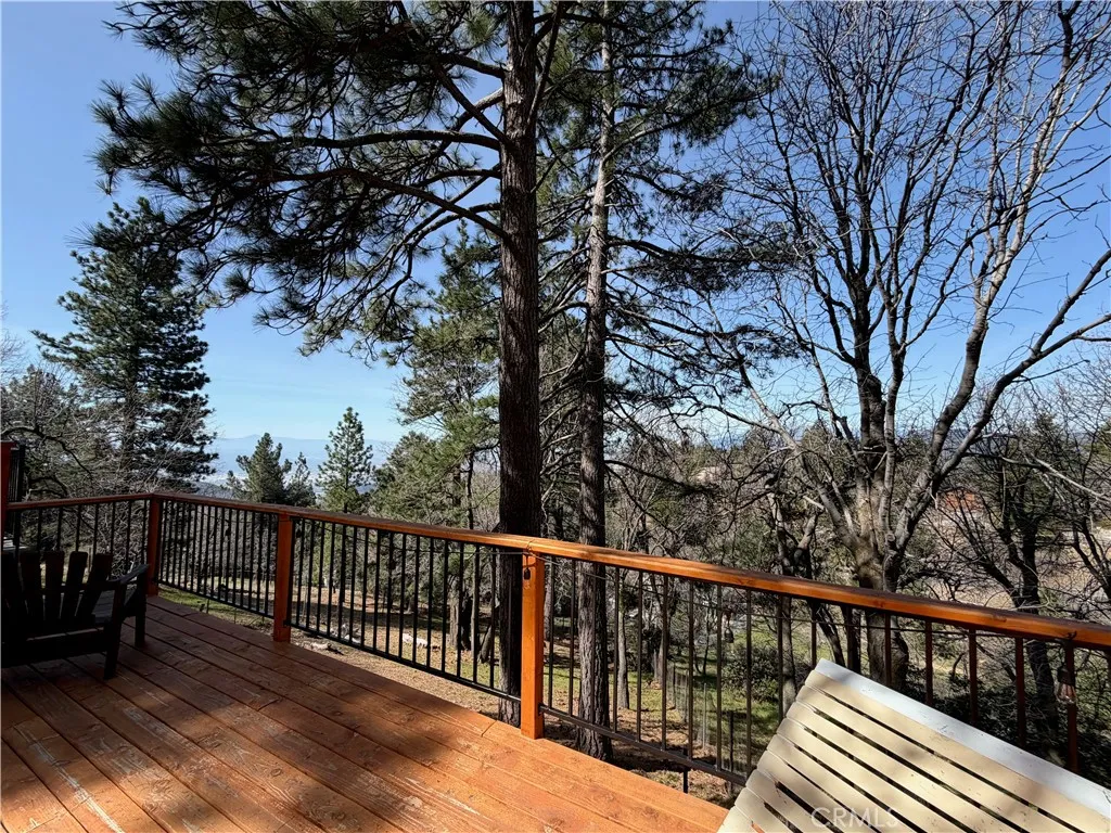 Majestic views take center stage in this charming 2-bedroom, 2-bathroom mountain cabin, offering the perfect blend of comfort, character, and outdoor living. Tucked below street level for added privacy, the home features off-street parking for multiple vehicles and a paver landing leading to the entry of this single-level retreat. Inside, youll find knotty pine vaulted ceilings and a stunning stone hearth fireplace that anchors the living space with warmth and rustic elegance. The layout includes a guest bedroom and full bathroom off the living room, while the primary suite offers its own bathroom with a beautifully tiled walk-in shower. The kitchen features an eat-at bar and convenient laundry area, making everyday living easy and functional. Step outside to truly appreciate the setting with a gorgeous newer main deck and an additional tiered deck belowperfect for sunbathing or soaking in the views. The side yard with picnic area is ideal for summer BBQs and outdoor gatherings. Situated on a spacious 13,056 sq ft lot, the property also includes a fenced backyard and numerous upgrades such as a newer water heater, HVAC system, roof, and deckingoffering peace of mind for years to come. Located just minutes from the local ski resort and scenic hiking trails, this home is perfect for full-time living or a relaxing weekend getaway in the mountains.
