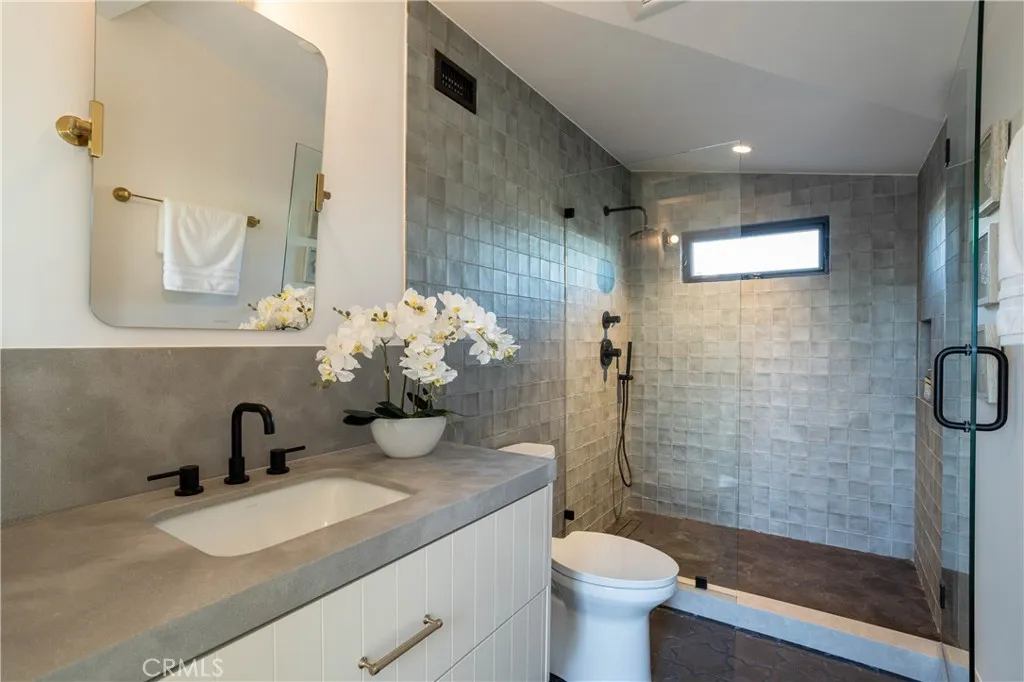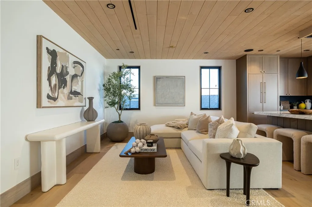 Tucked behind the front residence, the rear home at Casa Caliza is a true entertainers retreatan inspired blend of thoughtful design, natural light, and seamless indoor-outdoor living. Offering approximately 1,272 square feet, this 2-bedroom, 2.5-bathroom residence lives with both intention and style. The interior continues the same elevated design language, featuring marble countertops, richly textured Roman clay finishes, and a full Thermador appliance packagebringing both beauty and performance into the heart of the home. At its core, the kitchen flows effortlessly into a stunning loggia-style California room, where an extended countertop creates a natural connection between the two spacesideal for hosting and everyday living alike. Expansive sliding doors fully pocket into the walls, dissolving the boundary between indoors and out and creating a truly open, airy environment. The builders commitment to quality is further reflected in their use of a detailed light study prior to construction, ensuring both the front and rear residences are filled with abundant natural light throughout the day. Above, a private rooftop deck offers a truly exceptional extension of the homefeaturing a covered sky kitchen equipped with a BBQ, sink, and refrigerator. This thoughtfully designed space invites effortless entertaining and relaxed coastal evenings, creating a setting that feels both elevated and distinctly memorable. Just moments from the charm of the Village and the coastline beyond, this residence captures a lifestyle that is vibrant, relaxed, and effortlessly refined.