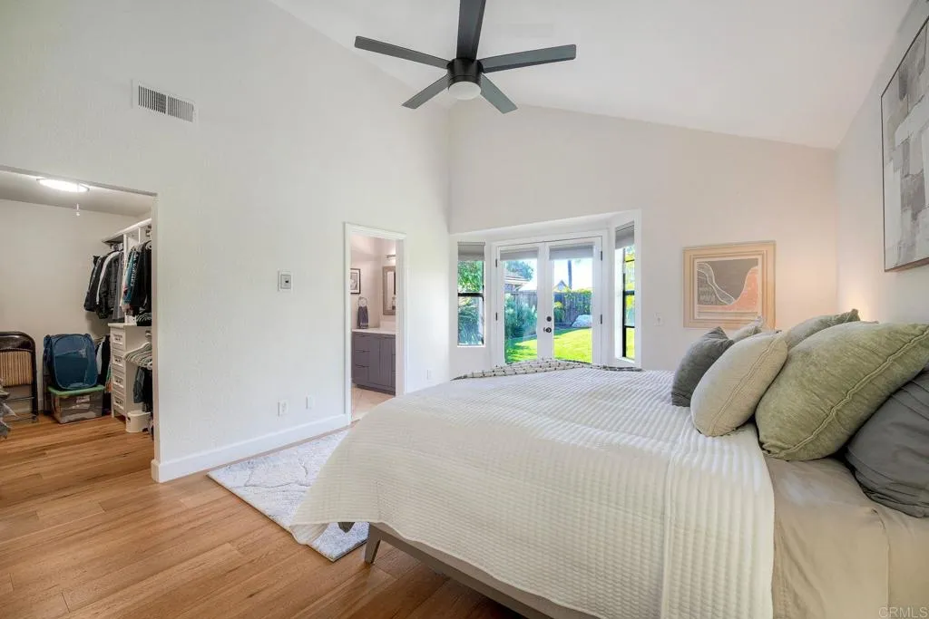 Beautifully upgraded single-level home ideally situated on a quiet cul-de-sac West of Crest Dr. in Encinitas. This light-filled residence offers plenty of charm with entry courtyard, French doors, bay windows, window seats, soaring ceilings, and wide-plank wood flooring throughout. The thoughtfully designed layout includes an interior laundry room, disappearing door screens, and an abundance of storage with multiple accessory closets, including a walk-in in the primary. Energy-efficient features include PAID solar and a Tesla backup battery for added peace of mind. The stunningly remodeled kitchen is a true centerpiece, showcasing a 6 burner Wolf range, farmhouse sink with instant hot filtered water, and a spacious island, with peaceful views out to the amazing backyard. Other upgrades include a new roof and water heater (2020). Step outside to your private backyard retreat, complete with a jacuzzi and outdoor shower, surrounded by lush, meticulously maintained landscaping. The expansive lot offers ample space for a pool or ADU, while still feeling like a turnkey oasis as-is. No HOA. Ideally located just minutes from downtown Encinitas, Swamis, beautiful local beaches, shopping, dining, and convenient freeway and El Camino access, and top-rated schools. Do not miss this one!