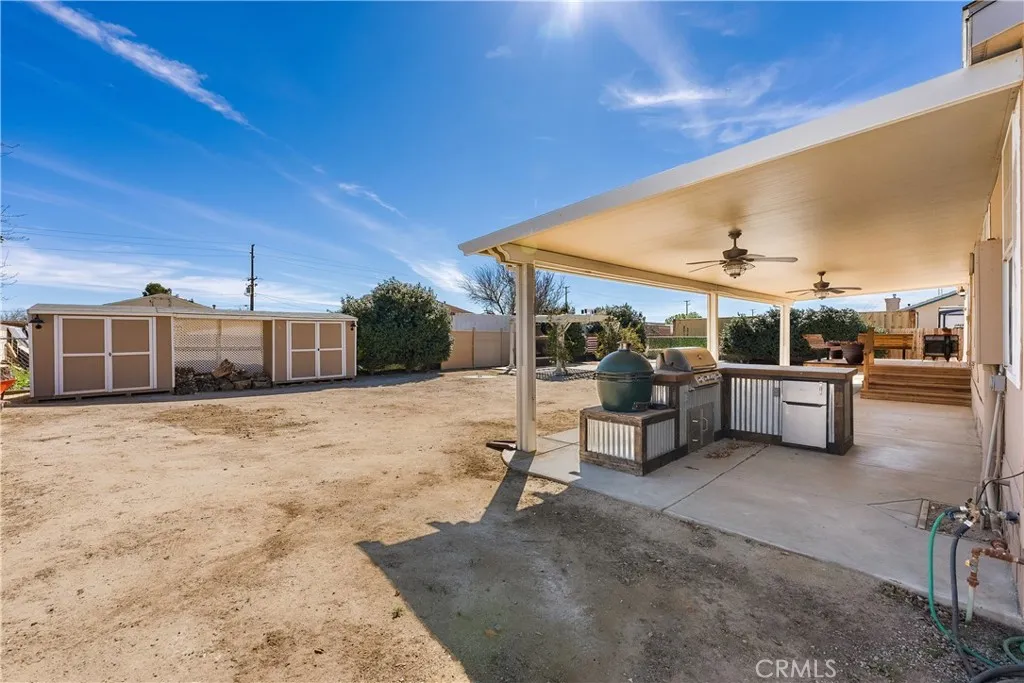 Enjoy breathtaking sunset views from this 2006-built ranch-style home situated on a spacious .34-acre lot--offering the perfect blend of comfort, functionality, and outdoor entertaining. With 2,014 sqft, this home features 3 bedrooms, 2 full bathrooms, and an inviting open-concept layout filled with natural light throughout. Interior Highlights: Bright and airy open floor plan--ideal for modern living. Fresh interior paint throughout. New carpet in all bedrooms. Durable porcelain wood-plank tile with Hardibacker underlayment. Spacious kitchen area open to dining & living room--perfect for entertaining. Indoor laundry room with dryer & new washer included. Chef-Inspired Kitchen: Recessed lighting for a clean, modern feel. New stainless-steel oven & range. Stainless steel refrigerator, microwave & dishwasher included. Breakfast bar seating. Rolling butcher block island. Hanging pot & pan rack for added style and function. Out back there is a desert Oasis - Built for Entertaining. A backyard retreat featuring an expansive deck with vinyl patio cover, two ceiling fans for year-round comfort, a built-in BBQ with refrigerator, an X-Large green Kamado charcoal grill & smoker, an in-ground deep pit BBQ for authentic outdoor cooking, and a pergola with a cozy outdoor fireplace. Additional Features: Insulated 2-car garage, 2 storage sheds, RV access, front porch with wheelchair accessibility, public water & natural gas utilities. Schedule your private tour today!