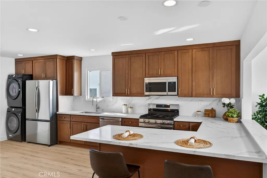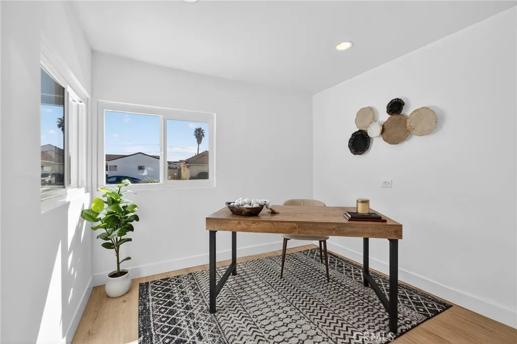 Fully remodeled and filled with natural light, 18901 Haas Ave offers a spacious and thoughtfully designed layout in a quiet Torrance neighborhood. This 4-bedroom, 2-bathroom home PLUS a dedicated office spans approximately 1,850 square feet on a flat 5,000+ square foot lot, delivering modern updates and flexible living spaces throughout. Inside, new wide plank flooring and energy-efficient windows create a bright and inviting atmosphere. The beautifully remodeled kitchen features rich wood cabinetry, light quartz countertops, and stainless steel appliances, opening to an oversized dining area that flows naturally into a step-down living roomideal for everyday living and entertaining. Just off the kitchen, a generous office provides the perfect space for working from home or creative pursuits, while a convenient stackable laundry area includes a washer and dryer. The homes layout offers excellent separation, with three bedrooms and a full bathroom located off the dining area, while the private primary suite sits just off the living room with views of the backyard. The oversized living room opens to a patio and a large, flat backyardoffering plenty of room for outdoor dining, play, or future possibilities. Additional improvements include a new roof, new windows, new HVAC, new electrical panel, and updated finishes throughout. Situated on a quiet horseshoe street with minimal through traffic, the home offers a peaceful setting while providing quick freeway access for commuters, along with close proximity to award-winning Torrance schools, shopping, dining, and less than five m