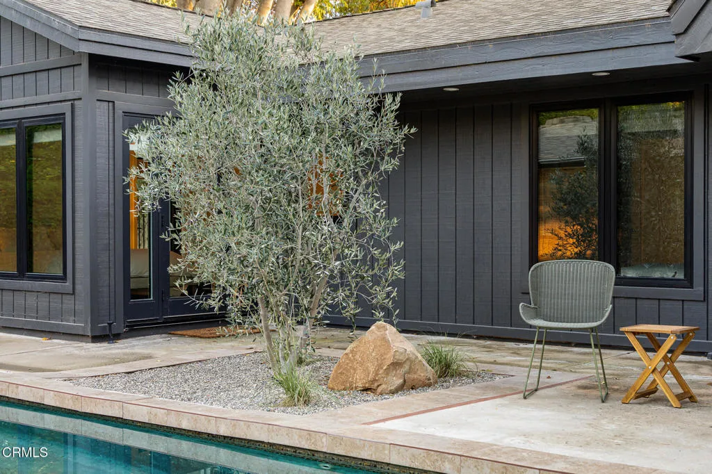 Welcome to your peaceful Ojai retreat. Set on a lush, private acre just five minutes from downtown, this fully remodeled home offers the perfect blend of style, comfort, and connection to the outdoors. Inside you will discover a redesigned interior featuring vaulted ceilings, clean minimalist lines, and an abundance of natural light. The gourmet chef's kitchen is a centerpiece, complete with high-end finishes with custom white oak cabinets, a Wolf flat top range and speed oven, Miele dishwasher, Sub Zero fridge, handmade tile backsplash, marble countertops and deVol light fixtures.The home offers four spacious bedrooms and two beautifully updated full bathrooms with an impressive wood burning plaster fireplace with a gas starter in the living room creating a comfortable entertaining space with its open floor plan to the kitchen and dining room. Additional features include newer HVAC, updated electrical and plumbing, a two-car attached garage, loft upstairs and a separate detached structure, perfect for a future ADU, artists studio or workshop.Outside, the expansive grounds include a sparkling pool, two fire pit areas, and mature fruit trees. Surrounded by mountain views, quaint shops and restaurants and just steps from scenic trails of the Ojai River Preserve, with hiking, biking and horseback riding, this property invites you to slow down and soak in the serenity.Embrace the Ojai lifestyle - peaceful, spacious, and move in ready, all just minutes from town.