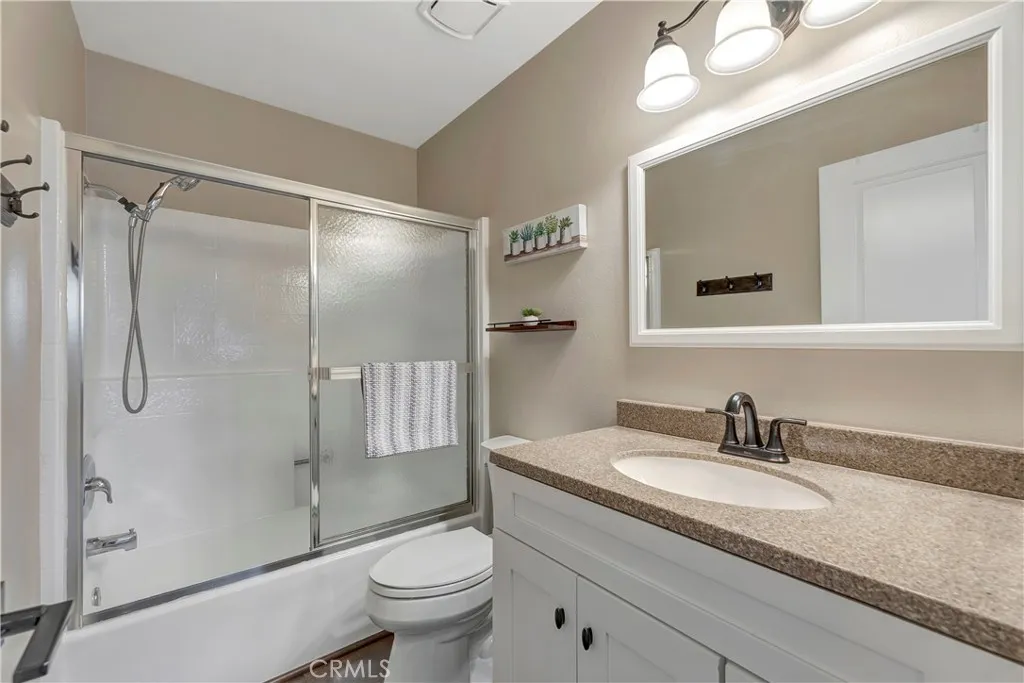 This beautifully appointed, spacious home provides two bedrooms, two bathrooms, and a large loft, a versatile space for an office or additional living area. This home has been completely remodeled. The large kitchen has been thoughtfully designed with custom cabinetry, spacious pantry, plenty of cupboard and countertop space, and newer stainless-steel appliances. Recent upgrades include beautiful vinyl flooring throughout, remodeled bathrooms, complete PEX re-pipe, LED lighting, ceiling fans in the bedrooms and loft, fresh paint, indoor laundry with washer and dryer included. The primary bedroom is an ensuite with private bathroom and walk-in closet. The secondary bedroom is spacious. The open design of this floor plan is perfect for comfortable living and entertaining. The private patio is wonderful for enjoying the sunshine and potting plants for your home-grown veggies. The one car garage is situated directly below the home providing easy access and extra storage space. You will love the secluded feeling with mature trees surrounding the home. The community pool is across the way, a wonderful place to relax after a dip in the pool. Close to everything yet with that country feel! Enjoy the Lake Forest Sports Park, hiking and biking trails, restaurants and shopping, the toll roads, all within minutes of your new home! Race to this one, you will delight in what you see!