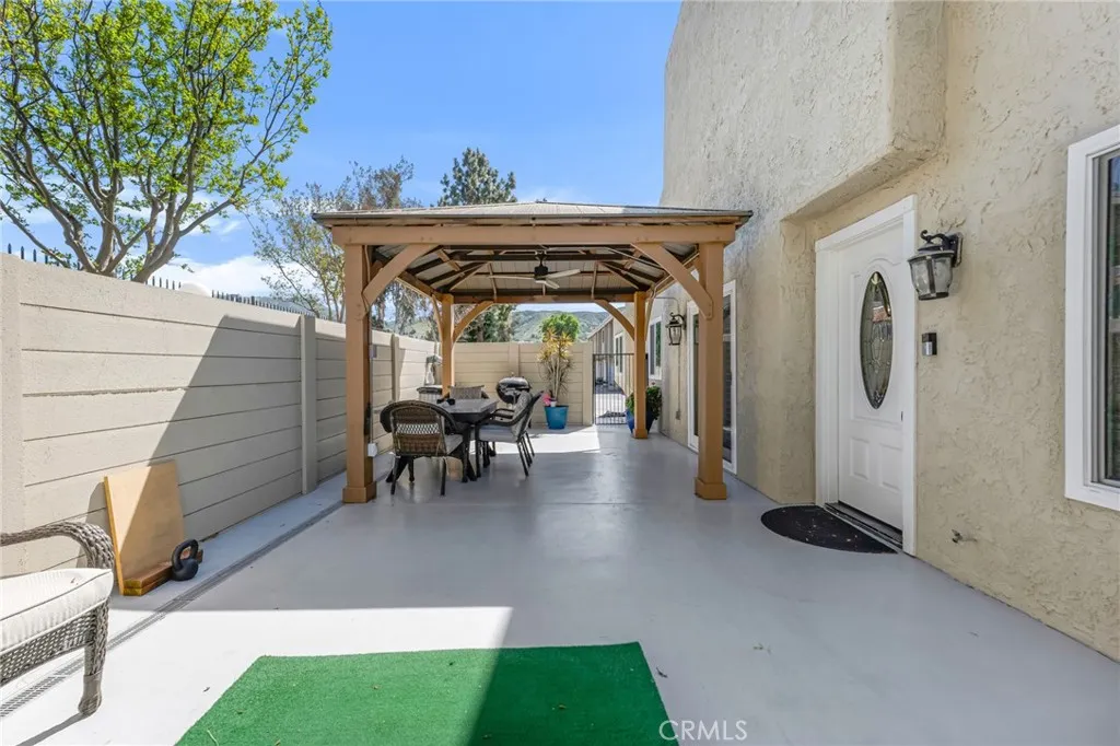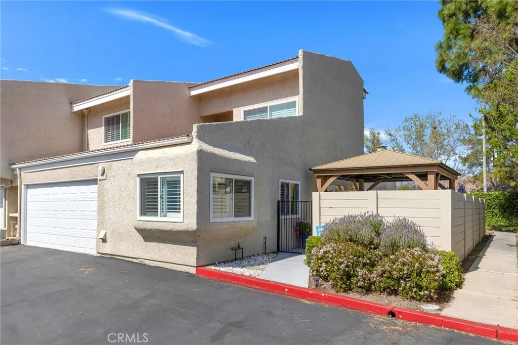 Welcome to the highly sought-after Stonegate Villas community! This rare approximately 1,950 sq. ft. end-unit townhome has been beautifully upgraded throughout, offering both comfort and style. Step inside to soaring vaulted ceilings and an abundance of natural light that create a bright, open atmosphere. The spacious living room features a cozy fireplace and flows seamlessly into the formal dining areaperfect for both everyday living and entertaining. The home also showcases engineered hardwood flooring throughout the downstairs and custom wood shutters for a refined touch. The well-appointed kitchen offers ample cabinetry, elegant marble countertops, stainless steel appliances, and a charming breakfast nook ideal for casual dining. The main-level primary suite provides both convenience and comfort, complete with a walk-in closet, dual sinks with an extended vanity, a shower/tub combination, and direct access to a private brick patio. A guest powder room is also located on the main floor. Upstairs, you'll find two generously sized bedrooms, a versatile loft space, a bathroom with walk in showerperfect for family, guests, or a home office setup. Additional highlights include a direct-access two-car garage with built-in cabinetry and a dedicated laundry area. Residents of Stonegate Villas enjoy easy access to the community pool and spa just steps away, as well as a clubhouse available for private gatherings and special events. This is a rare opportunity to own a beautifully upgraded home in a desirable community!