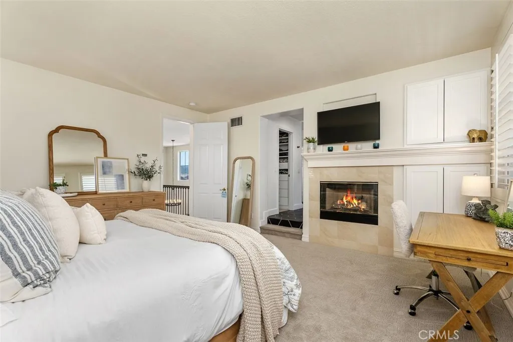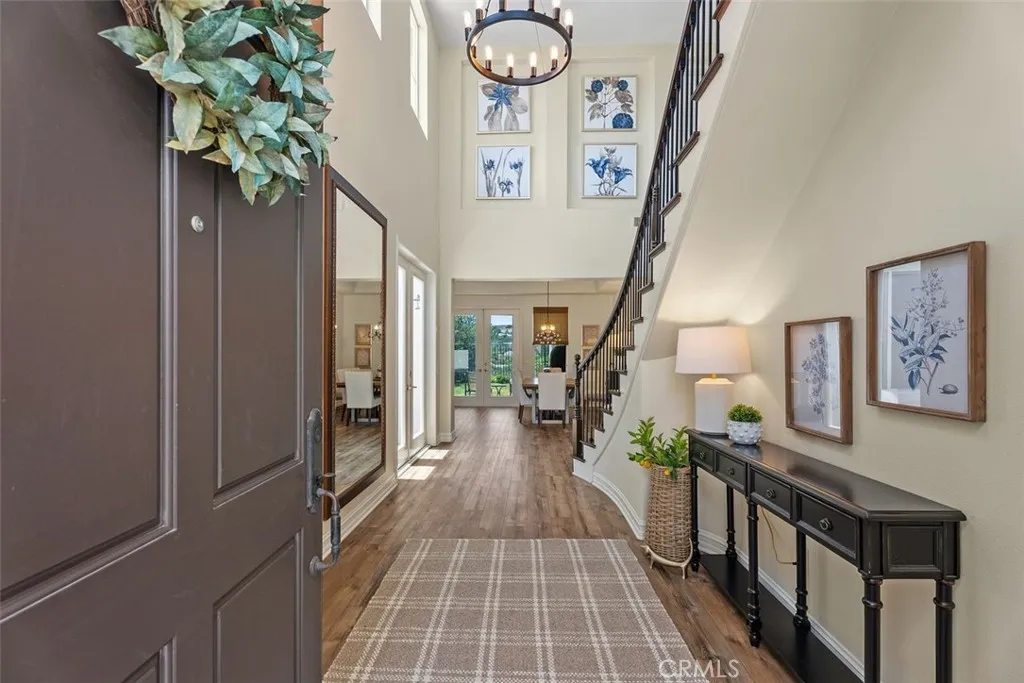 This stunning 4-bedroom, 3-bathroom home offers 2,703 square feet of thoughtfully updated living space on a cul-de-sac in one of Coto de Cazas most desirable neighborhoods. Step through the large, elegant front entryhighlighted by a tranquil fountainand into a home that blends modern comfort with timeless charm.The lower level features a private office and bonus room with an adjacent bathroom, ideal for guests or remote work. The formal living and dining rooms boast French doors opening to the backyard, perfect for indoor-outdoor entertaining. The open-concept family room and kitchen area invite gatherings and everyday enjoyment. Enjoy peace of mind with recent upgrades including full repiping, a newer HVAC system, updated stair railings, and refreshed lighting. Freshly installed luxury vinyl plank flooring and carpet add a modern touch throughout. Upstairs, the spacious master suite is a true retreat, featuring a cozy fireplace and expansive views of the hills. The fully remodeled master bathroom showcases sleek, modern vanities, a re-done walk-in shower, freestanding tub, and dual built-in closets. All bathrooms and the laundry room upstairs have also been tastefully remodeled with contemporary finishes. Additional highlights include a generously sized secondary bedroom with a charming nook, plantation shutters throughout, and a garage outfitted with custom built-in cabinetry and overhead storage. Step outside to a covered patio and soak in the peaceful hilltop views. Coto de Caza offers a prime location near the 241 toll road, combining luxury living with convenient acce