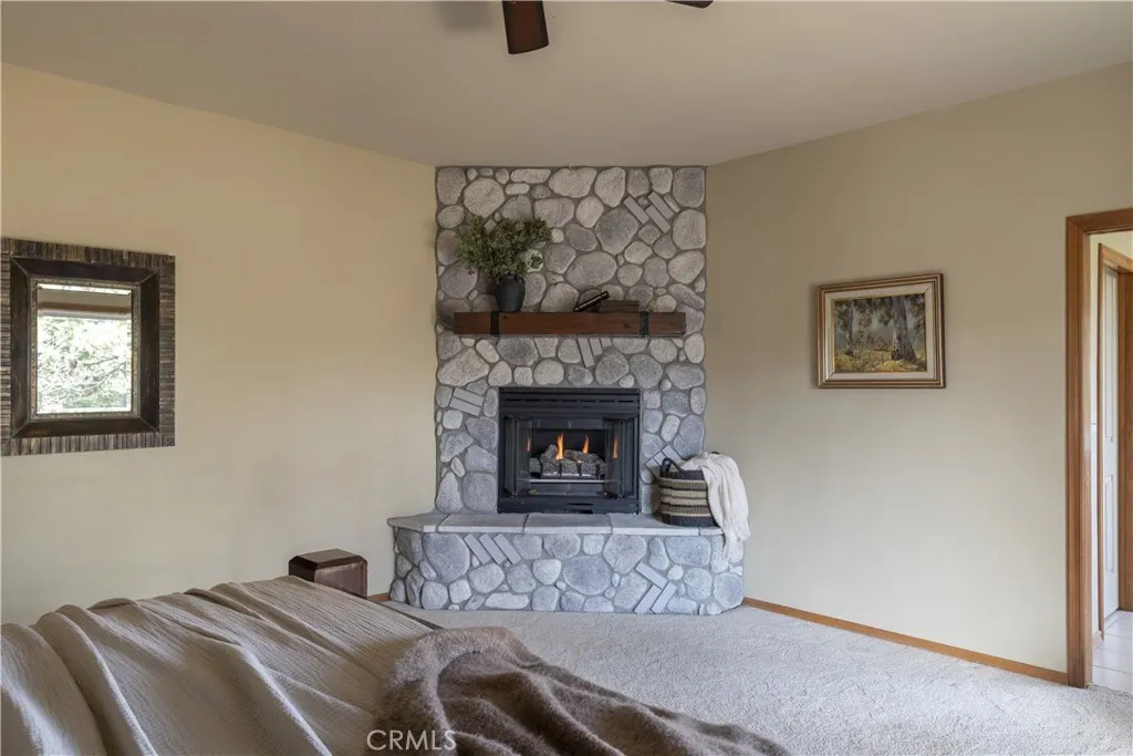 Tucked among the pines, your private retreat awaits on a .49 acre parcel in Lake Arrowheads coveted Summit area. This 4,265 sq ft mountain lodge offers 6 bedrooms, 6 bathrooms, and full lake rights. Designed for both entertaining and everyday living, the home features vaulted ceilings, wood flooring, and a spacious open concept layout centered around a stone fireplace. The chefs kitchen includes quartzite surfaces, custom cabinetry, a large island, and stainless appliances with double ovens. Resort style grounds showcase a custom pool and spa, multiple Trex decks, and unobstructed mountain and forest views, all within a fully fenced yard ideal for pets and play. The primary suite offers a fireplace, spa like bath, and treetop views, while additional guest suites, a dedicated gym, and a lower level game room with a bar and bunk room provide ample space for family and guests. Entry is level from the 3 car garage into the kitchen. Leased solar, A/C, generator ready panel, and ample storage complete the home. A rare blend of privacy, scale, and lifestyle in Lake Arrowhead.