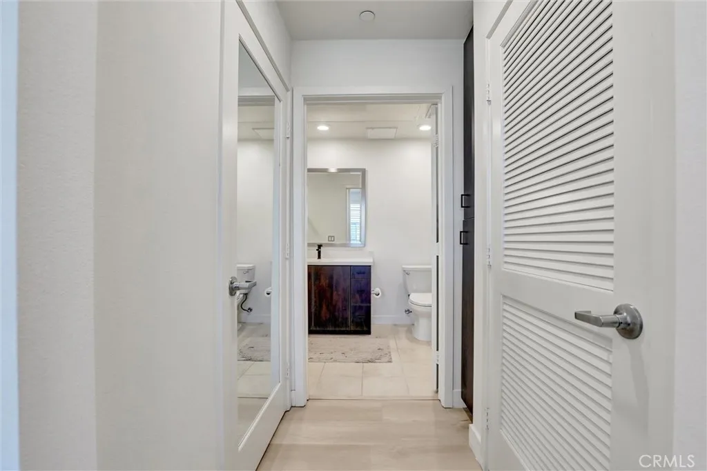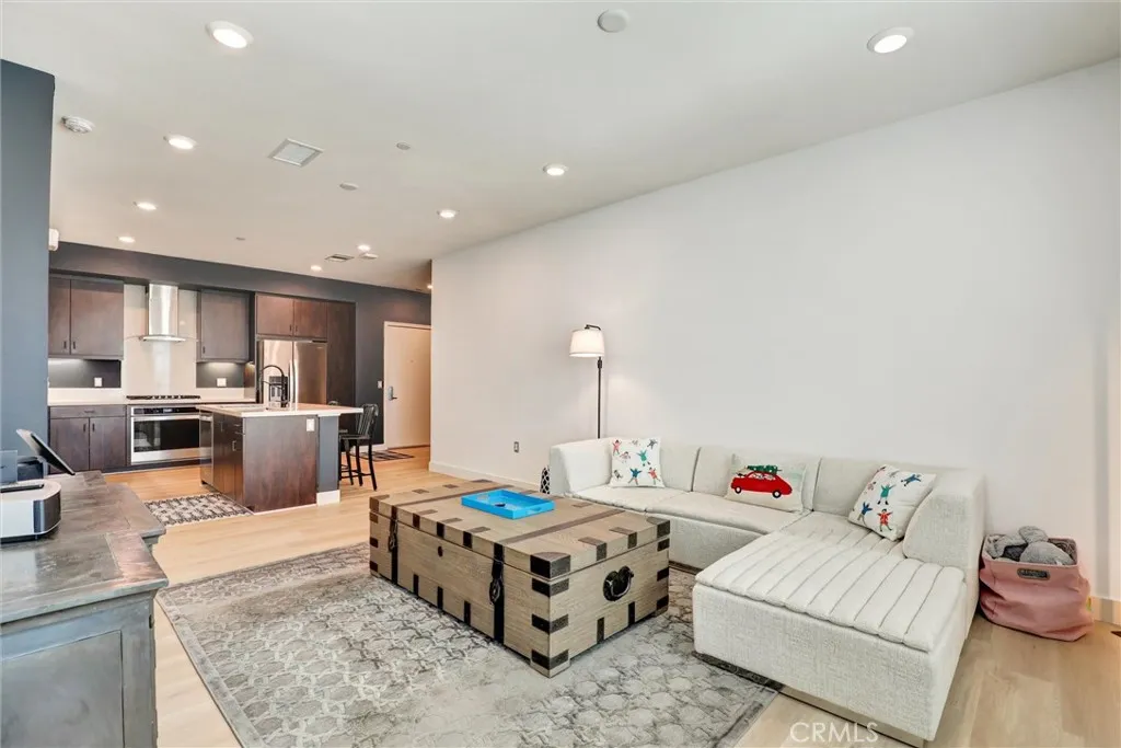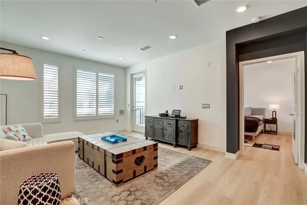 Top-floor residence with only one shared wall, ideally situated within The Central Park West community in Irvines Financial District. This highly sought-after 1-bedroom plus den floor plan offers exceptional flexibility, with the den featuring its own closet and en-suite half bathideal for a guest space, office, or second bedroom. The home is thoughtfully upgraded with a center island, quartz countertops, stainless steel farm sink, high-end stainless steel appliances, and under-cabinet lighting, creating a sleek and functional kitchen design. Recent improvements include brand-new luxury vinyl plank flooring, fresh interior paint, updated fixtures, a new smart thermostat and new garbage disposal. Offered turnkey and fully furnished with curated pieces from Restoration Hardware, CB2, and Nectarincluding kitchen appliancesthis residence is a true move-in-ready opportunity. The bright, open layout extends to a private balcony overlooking a peaceful courtyard, providing a quiet retreat. Additional features include in-unit washer and dryer, white shutter window coverings, Ring doorbell system, and two reserved covered parking spaces conveniently located next to the elevatoran uncommon and valuable feature within the community. Residents of this secure, controlled-access urban-style community enjoy access to an approximately 8,000 square-foot clubhouse and resort-caliber amenities, including two Jr. Olympic saline pools, three outdoor spas, a barbecue pavilion, state-of-the-art fitness center, outdoor half basketball court, and pickleball court. The meticulously maintained grounds