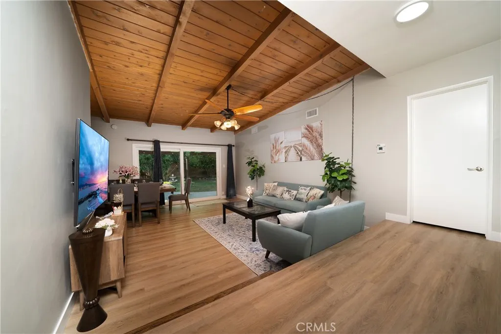Welcome to this beautiful, modern, and fully remodeled home featuring 3 bedrooms and 2.5 bathrooms, thoughtfully designed to offer comfort, style, and spacious living, ideal for both family living and entertaining. From the moment you arrive, you will be impressed by the brand-new exterior paint and the spacious RV parking in the front, providing added convenience and flexibility. Inside, the home showcases a completely new interior with a full remodel throughout, including a brand-new kitchen with elegant white cabinetry, high-end stone countertops, and a refined modern design, fully renovated 2.5 bathrooms with stylish tile work and new fixtures, new double-pane windows for improved energy efficiency and sound insulation, fresh interior paint, and new luxury vinyl flooring throughout. The bedrooms are equipped with recessed lighting and new ceiling fans, creating a bright and comfortable atmosphere. The light-filled living room opens to a large sliding glass door leading to a peaceful backyard with a charming patio, perfect for BBQs, gatherings, or relaxing outdoors, complemented by a well-maintained private garden and a convenient storage shed. Additional features include central air conditioning, an automatic sprinkler system, and an indoor laundry area. The home is located in a highly desirable and convenient area, close to markets, restaurants, shopping centers, and just minutes from top universities including Biola University, Cerritos College, and California State University, Fullerton. This move-in-ready home is perfect for families, students, or anyone seeking a m