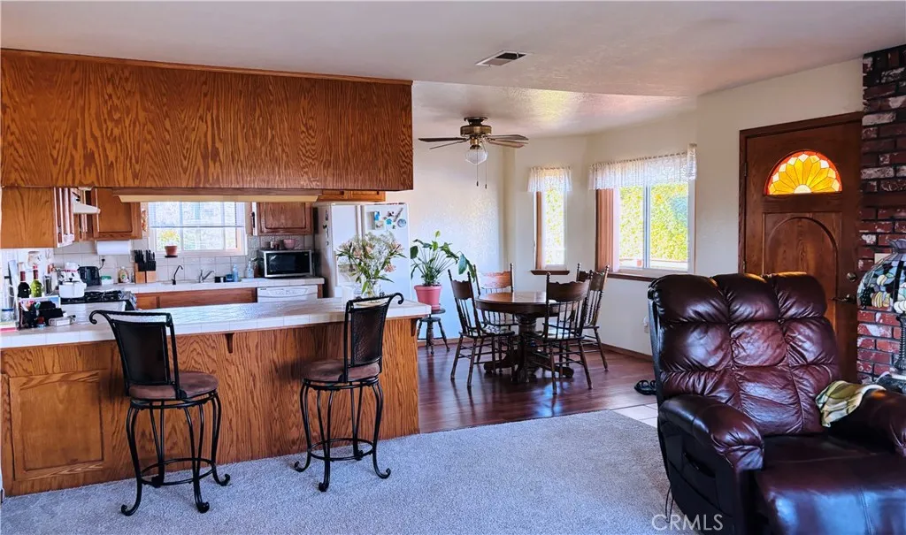 Positioned to capture sweeping views of the back bay, Morro Rock, and Hollister Peak, this single-level 3-bedroom, 2-bath home offers a rare combination of scenery, accessibility, and coastal lifestyle. Elevated above the street, the home features both interior view windows, including a bay-style living room window and an expansive deck where the setting truly opens up. The elevated design creates a sense of privacy while still being centrally located, with mature landscaping that softens the surroundings and provides a tucked-away feel. A circular driveway allows for easy in-and-out access. The lift to the main deck and entry adds an extra layer of accessibility for loading the likes of groceries, strollers and wheelchairs when needed. Inside, the home is warm and inviting, with new carpet in the living room and a bay-style window that frames the view. The well laid out kitchen features well-maintained wood cabinetry that has just been refreshed, along with wood trim accents throughout the home that add warmth. The south facing window above the sink adds brightness to the kitchen which opens up to the adjacent dining area. You will find a convenient counter for eating on the run or conversing with the chef. The 3-bedroom layout offers flexibility, whether you need space for everyday living, family visiting, or a home office/hobby room. The deck extends your living space outdoors, creating a natural place to gather, relax, breathe and take in the coastal scenery. Designed with functionality in mind, the property includes a circular driveway for ease of access along Santa Ys