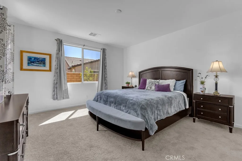 Modern desert living meets effortless comfort in this beautifully upgraded Silver Creek floor plan located within the sought-after Domani 55+ community in Palm Desert. Offering 1,732 sq ft, this thoughtfully designed home features 2 bedrooms, 2 bathrooms, and a versatile OFFICE/DEN, perfect as a home office, guest space, or creative retreat to suit your lifestyle. Inside, youll find high ceilings, an open-concept layout, and light porcelain tile flooring that create a bright, airy, and contemporary feel throughout. The gourmet kitchen is both warm and sophisticated, featuring sleek modern wood cabinetry, expansive countertops, UPGRADED Whirlpool stainless steel appliances, a walk-in pantry, and a large island with bar seating, ideal for everyday living and effortless entertaining. The great room is enhanced with built-in surround sound, creating an inviting space to relax or host. The primary suite offers a peaceful retreat with an en-suite bath and an oversized walk-in closet, while the secondary bedroom is privately located, providing comfort and privacy for guests. Seamlessly blend indoor and outdoor living with sliding glass doors that open to a covered patio, perfect for dining al fresco or enjoying quiet desert evenings. The professionally landscaped LOW-MAINTENANCE backyard, complete with lighting and irrigation, adds to the homes tranquil ambiance. Additional highlights include owned solar, numerous upgrades, and a true MOVE-IN ready condition. Furnishings are negotiable outside of escrow, offering added flexibility. Located within Domani, residents enjoy access to