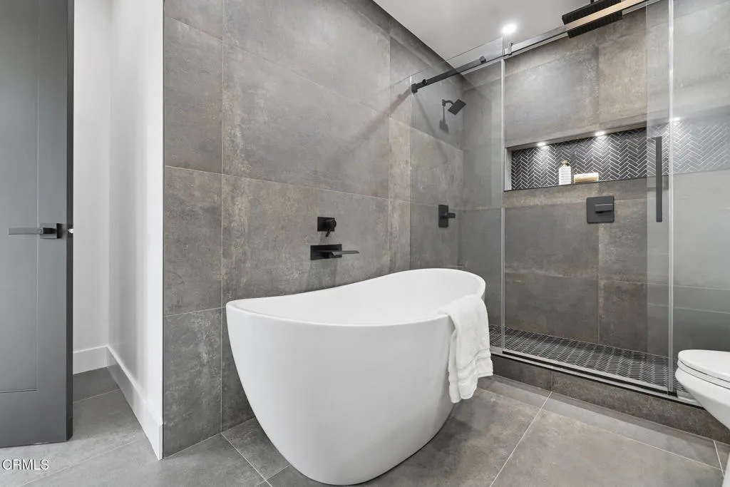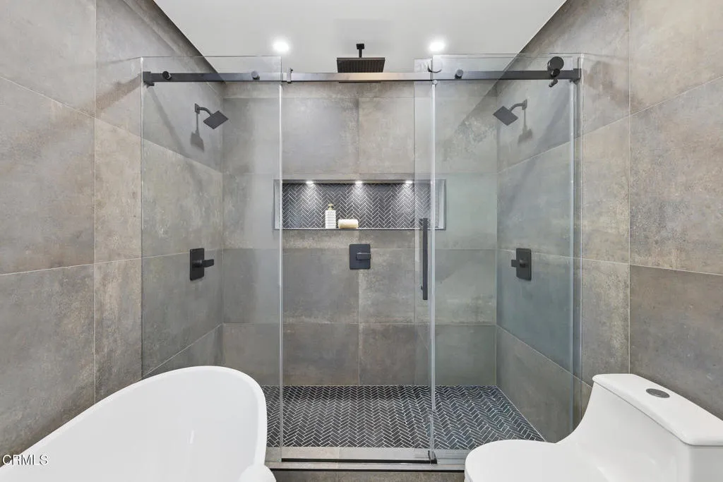 Set in one of Silver Lake's most coveted pockets, this beautifully reimagined residence offers sweeping views of the Reservoir and city views from nearly every room. Thoughtfully updated throughout--including kitchen, bathrooms, HVAC, and windows--the home blends modern comfort with a bright, open layout.The entry immediately reveals panoramic reservoir views, flowing seamlessly from the living room into the dining area and kitchen. Large glass sliders extend the living space to an expansive terrace, creating effortless indoor-outdoor living ideal for al fresco dining overlooking the lake.This level features a generous primary suite with dual closets--one with its own reservoir view--an en-suite bath with a soaking tub and triple-head walk-in shower, and a private terrace with partial views of the reservoir. A secondary bedroom and updated hallway bath complete the main floor.The lower level provides exceptional flexibility with two additional bedrooms: one a full en-suite with a walk-in closet, and a comfortable second bedroom. A third full bathroom is conveniently located in the hallway. A central lounge area with a custom wet bar provides a versatile space for relaxing or entertaining, with direct access to private outdoor areas that enhance the home's indoor-outdoor flow.A standout feature is the approximately 500sqft bonus space with its own separate entrance--ideal for a gym, studio, or dedicated workspace. Additional highlights include a spacious laundry room, ample storage, and a two-car garage.Situated on a prominent corner lot with dual access from Balmer Dr and K