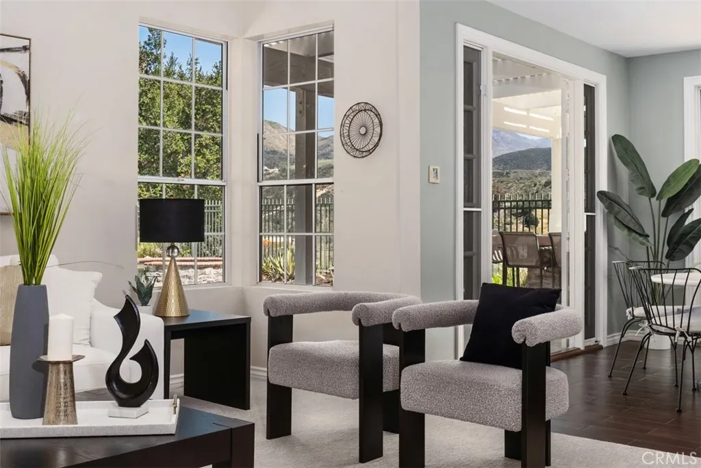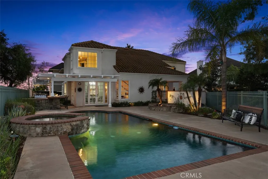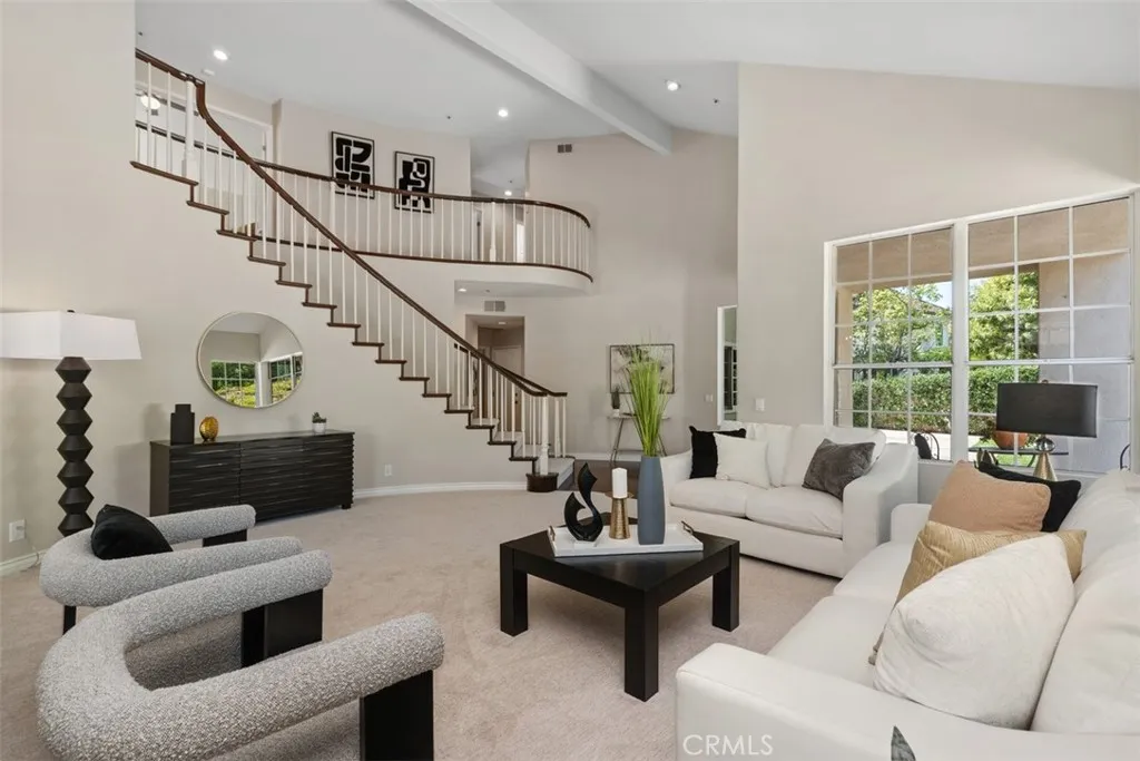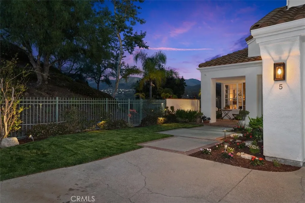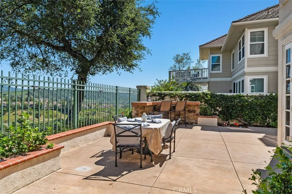 Perched at the end of a rare double cul-de-sac in the prestigious guard-gated community of Dove Canyon, 5 Highpoint offers over 3,100 square feet of refined living on an expansive 9,000 sq ft lot with exceptional privacy and truly spectacular panoramic views. From sunrise to sunset, the home captures sweeping vistas of the surrounding mountains, rolling canyon, and shimmering reservoir below. Elevated within the community and uniquely positioned on a flag lot (shared with just one more home with no neighbors on one side of the home), with no homes directly below, the property enjoys a commanding vantage point of unspoiled backdrop with no visual obstructions. A grand entry welcomes you with soaring ceilings and a striking spiral staircase, setting the tone for the homes elegant and open concept design. A dedicated downstairs office (the 3rd garage converted to an office, not included in the listed square footage) features custom built-ins, central air heating and cooling and enjoys peaceful views of the mountains along with the homes lush, welcoming entry landscapecreating an inspiring and private workspace. The longer driveway can accommodate multiple cars. The recently upgraded kitchen features quartz countertops and opens seamlessly to the Kitchen nook and the family room, ideal for both everyday living and entertaining. Upstairs, all four bedrooms are thoughtfully arranged, including a spacious primary suite with sweeping views and a spacious en-suite bath with the same views. One secondary bedroom features its own en-suite bathroom, while the remaining two share a conv